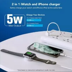 Introducing the 2 in 1 wireless magnetic charging system, designed to provide a convenient and efficient charging experience for your iPhone 14/13/12 and Apple Watch SE/6/5/4/3/2/1. With this system, you can charge both devices at the same time, saving you time and effort.